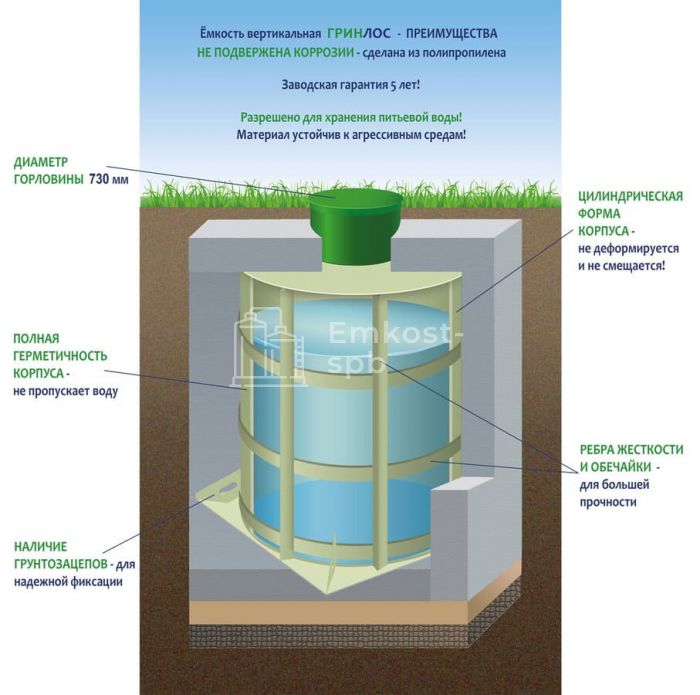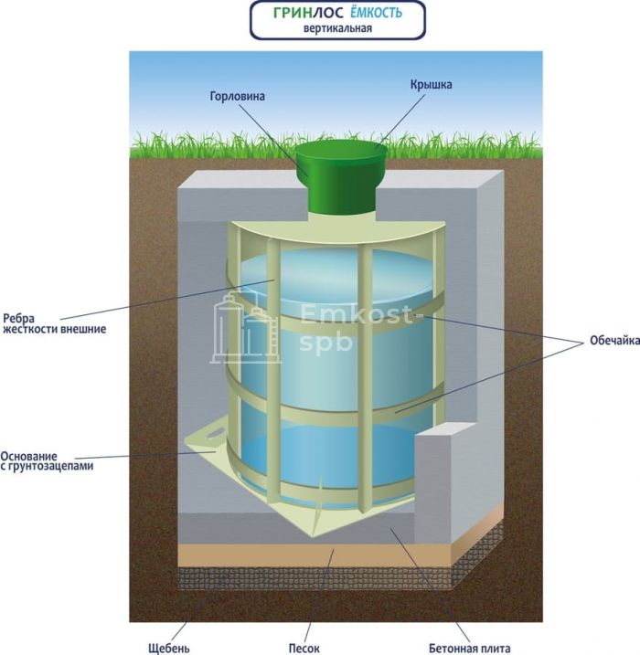 Характеристики ГРИНЛОС Емкость 12 м3 вертикальная цилиндрическая подземная