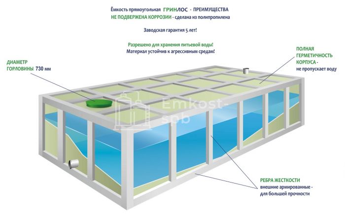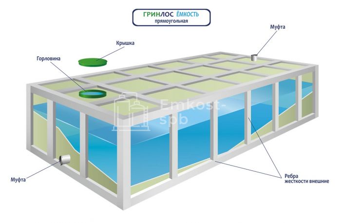 Характеристики ГРИНЛОС Емкость 25 м3 прямоугольная наземная