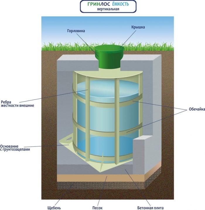Характеристики ГРИНЛОС Емкость 5 м3 вертикальная цилиндрическая подземная