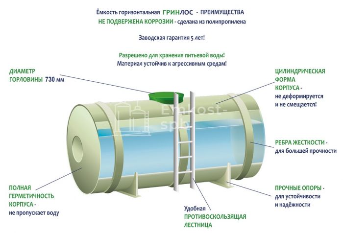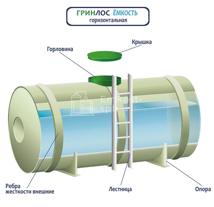 Характеристики ГРИНЛОС Емкость 8 м3 горизонтальная цилиндрическая наземная удлиненная