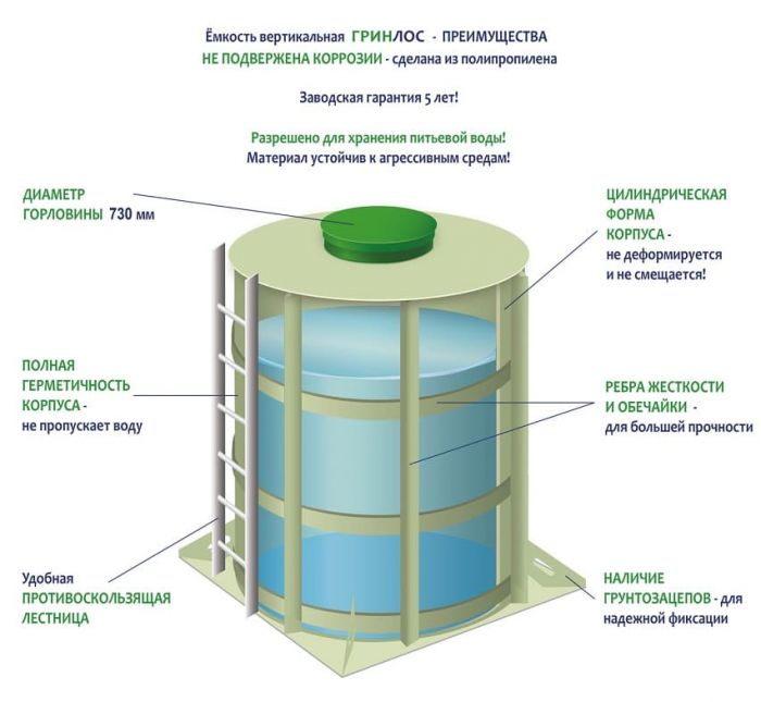 ГРИНЛОС Емкость 8 м3 вертикальная цилиндрическая подземная 2.4х2.4х2.4 полипропилен 295 от 324 700 руб.