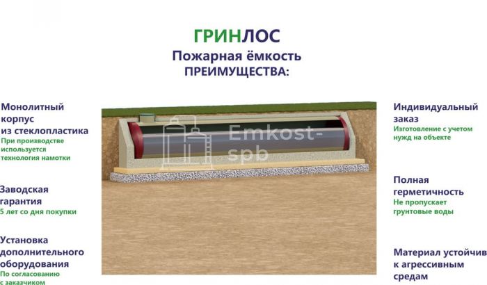 Характеристики Гринлос Пожарный резервуар 100-3000 стеклопластиковый