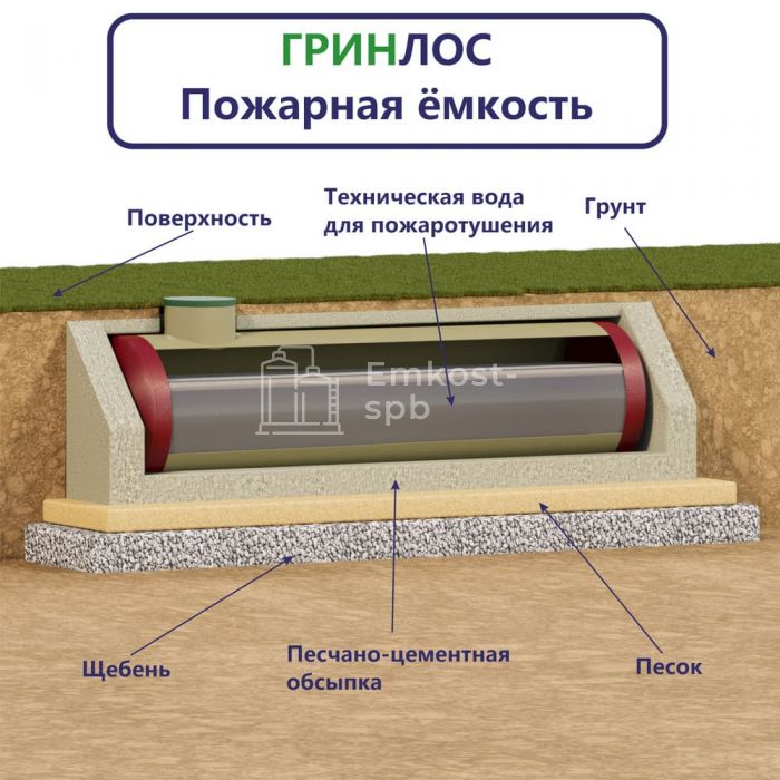 Гринлос Пожарный резервуар 30-2500 стеклопластиковый 6.2х2.5х2.5 стеклопластик 1081 по запросу