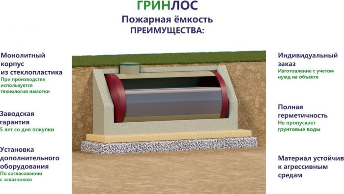 Характеристики Гринлос Пожарный резервуар 55-2300 стеклопластиковый