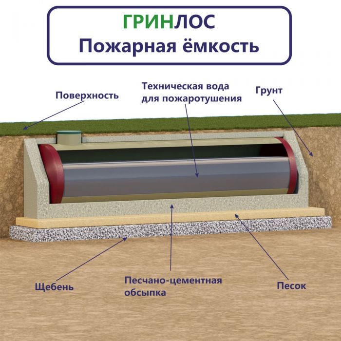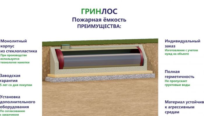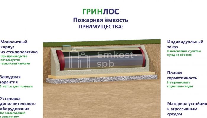 Характеристики Гринлос Пожарный резервуар 75-3000 стеклопластиковый