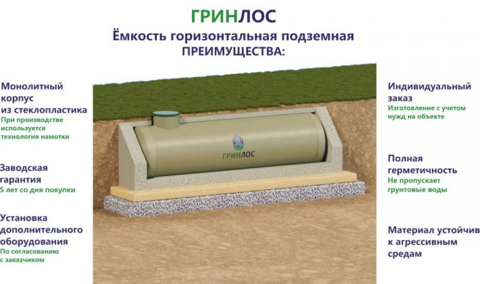 Емкость Гринлос стеклопластиковая 50-3000 горизонтальная подземная