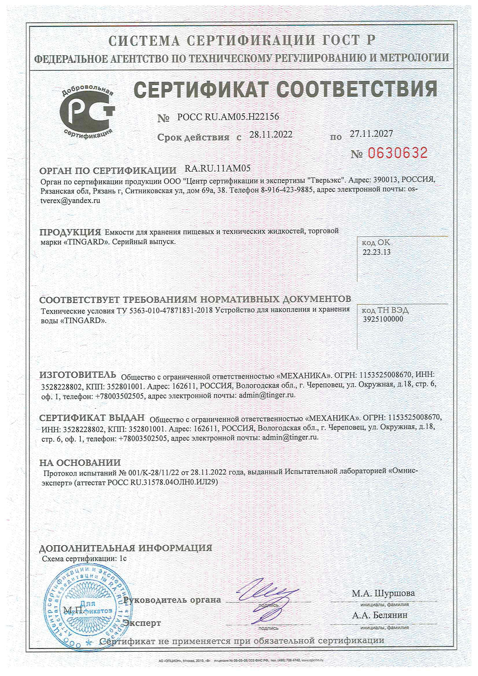 — Гарантийный срок на корпуса оборудования Tingerplast – до 5 лет;