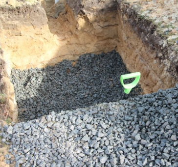 Выкопайте котлован, который должен быть на 10-20 см шире устанавливаемой конструкции. Это обеспечит удобство монтажа и последующей засыпки.