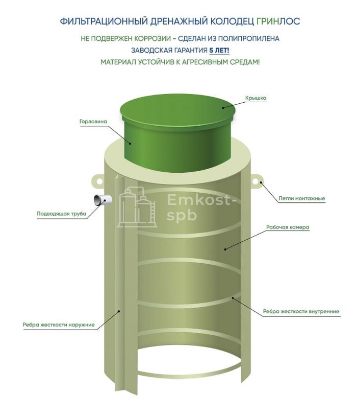 Фильтрационный дренажный колодец ГРИНЛОС ФД 1000/1000