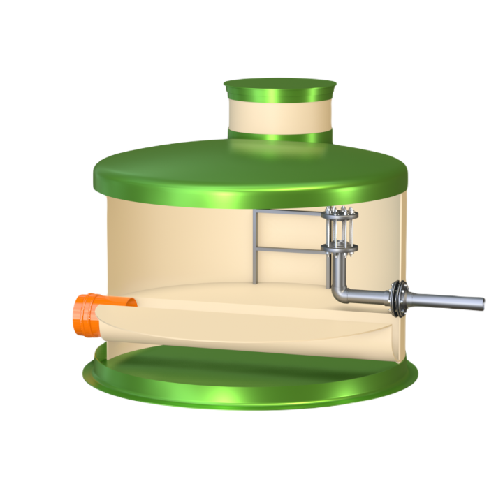 Колодец гаситель ГРИНЛОС Г 2300/1500 предназначен для снижения давления перед очистными сооружениями, когда сточные воды подаются под давлением из аккумулирующего резервуара.