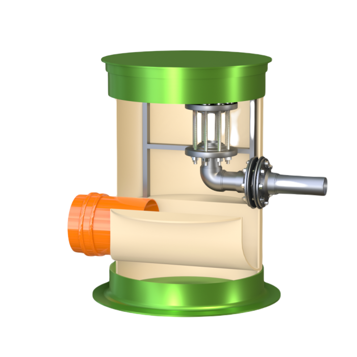 Колодец гаситель ГРИНЛОС Г 800/1000 предназначен для снижения давления перед очистными сооружениями, когда сточные воды подаются под давлением из аккумулирующего резервуара.