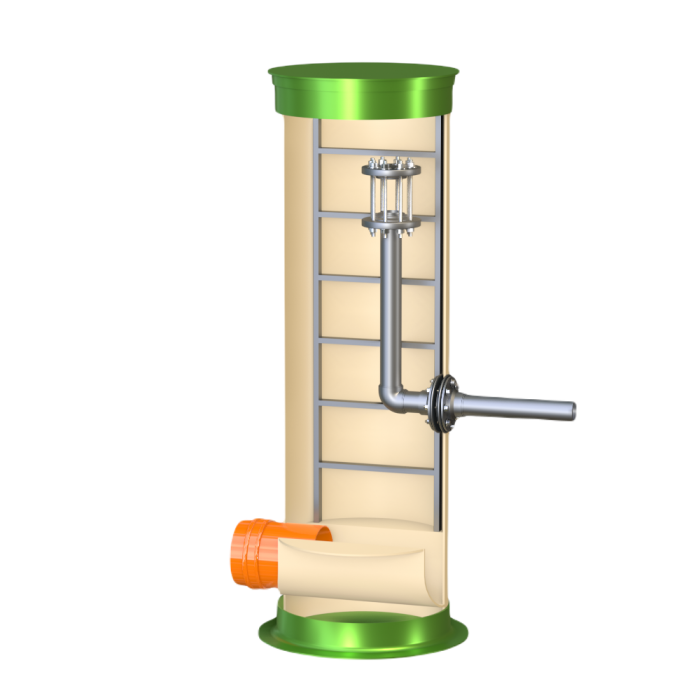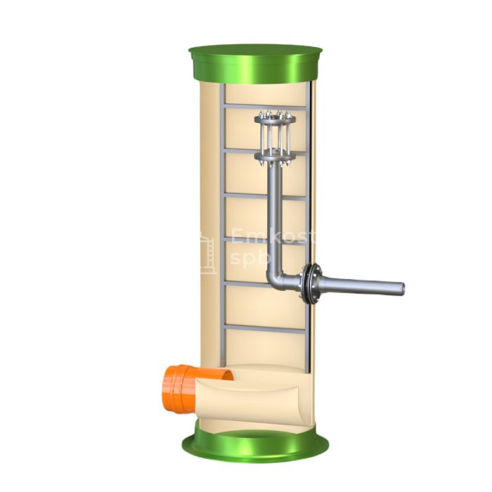 Колодец гаситель ГРИНЛОС Г 800/2500 предназначен для снижения давления перед очистными сооружениями, когда сточные воды подаются под давлением из аккумулирующего резервуара.
