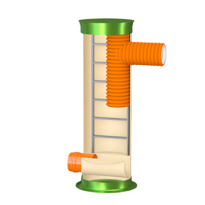 Перепадный колодец ГРИНЛОС Пп 800/2500 предназначен для использования на коллекторах дождевой канализации и особенно полеен, когда нужно обойти подземные коммуникации.