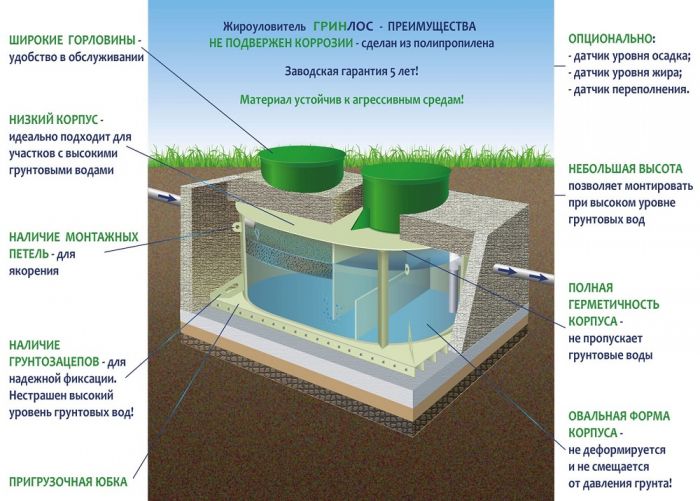 Жироуловитель Гринлос 11-600 Горизонтальный Подземный