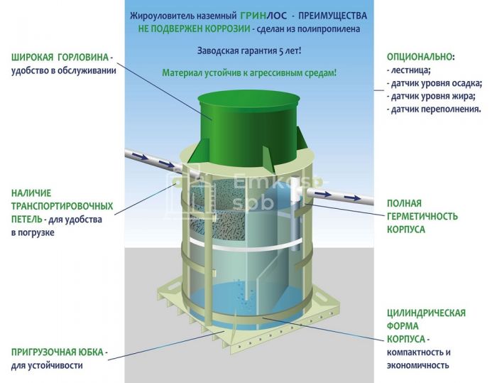| Гринлос Жироуловитель 22-1000 Вертикальный Подземный | 1.5х1.5х2.3 | - | 141 | от 249 200 руб. |