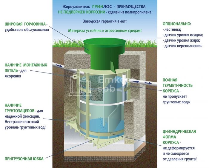 | Гринлос Жироуловитель 22-1000 Вертикальный Подземный | 1.5х1.5х2.3 | - | 141 | от 249 200 руб. |