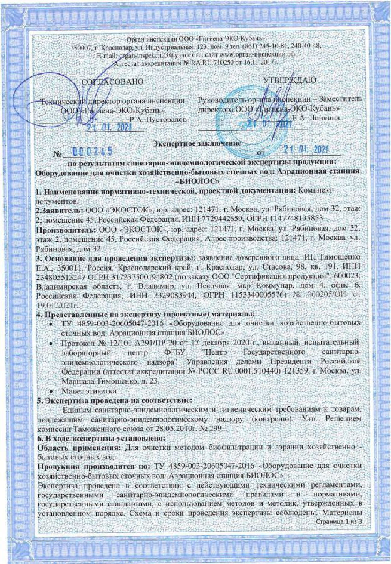— Срок службы БИОЛОС 2 – до 50 лет;