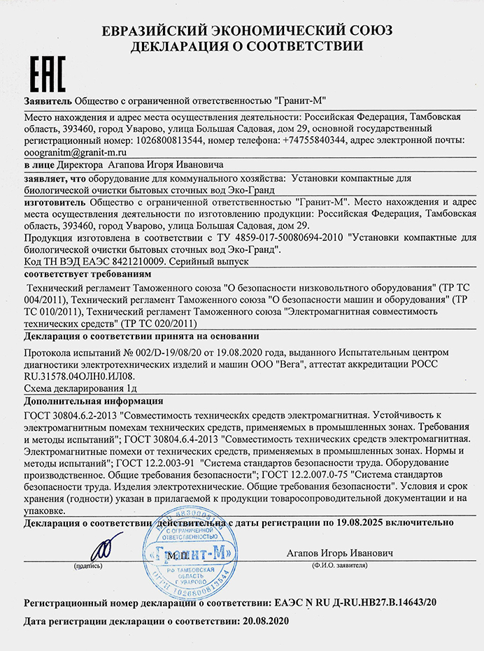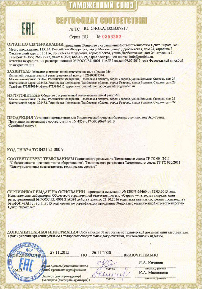 — Гарантийный срок на корпуса оборудования Эко-Гранд – до 5 лет;
