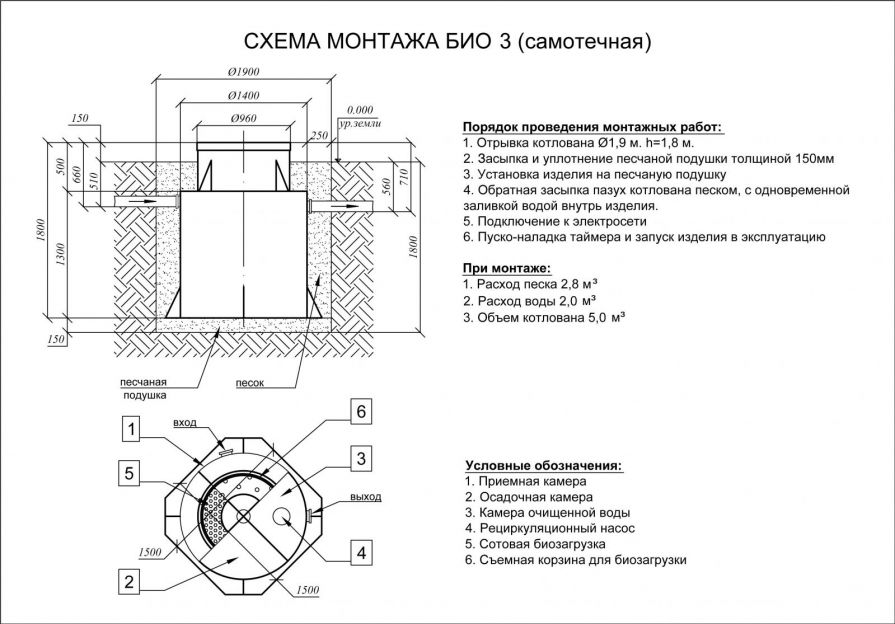 Станция Евролос Био 3 выполнена в форме цилиндра, в верхней части которого расположена горловина из монолитного полипропилена. Внутреннее пространство разделено на три отсека при помощи перегородок. При этом отсеки последовательно связаны щелями и патрубками. Биофильтр представляет собой заполненное синтетическими трубчатыми элементами кольцо. Закрепленная на биофильтре биомасса отвечает за очищение стоков.