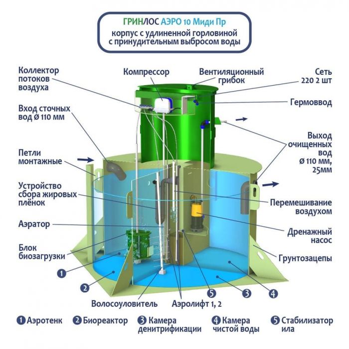 Септик ГРИНЛОС Аэро 10 Пр Миди