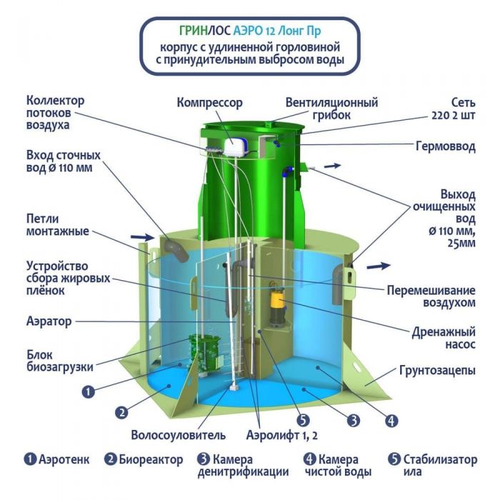 Септик ГРИНЛОС Аэро 12 Пр Лонг