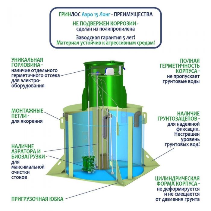 Септик ГРИНЛОС Аэро 15 Лонг