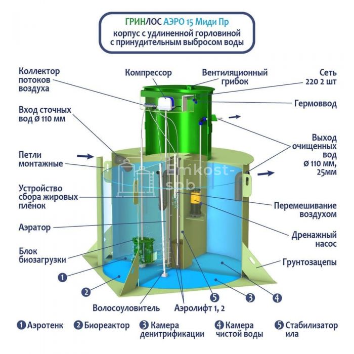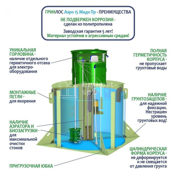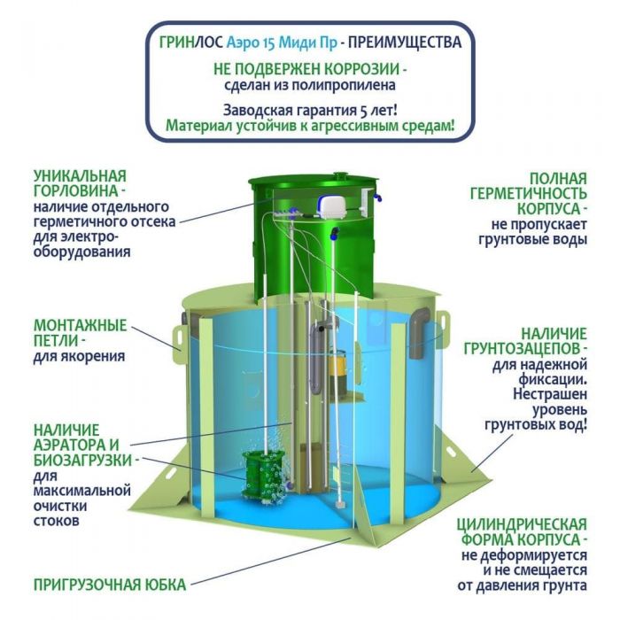 Септик ГРИНЛОС Аэро 15 Пр Миди