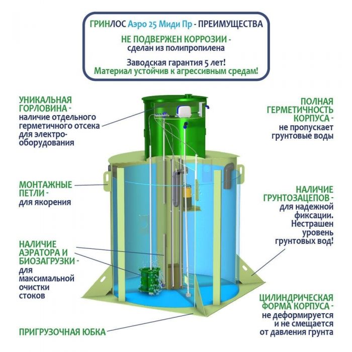 Септик ГРИНЛОС Аэро 20 Пр Миди