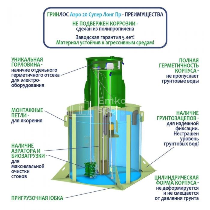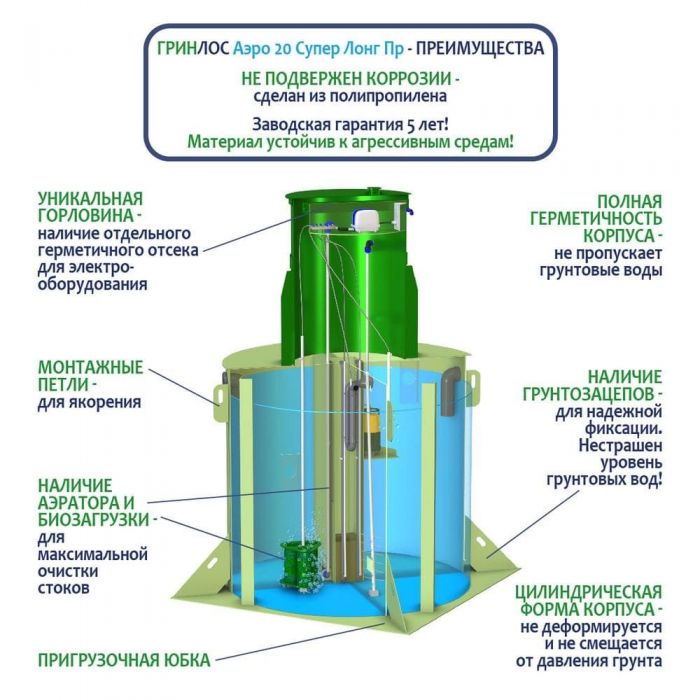 Септик ГРИНЛОС Аэро 20 Пр Супер Лонг
