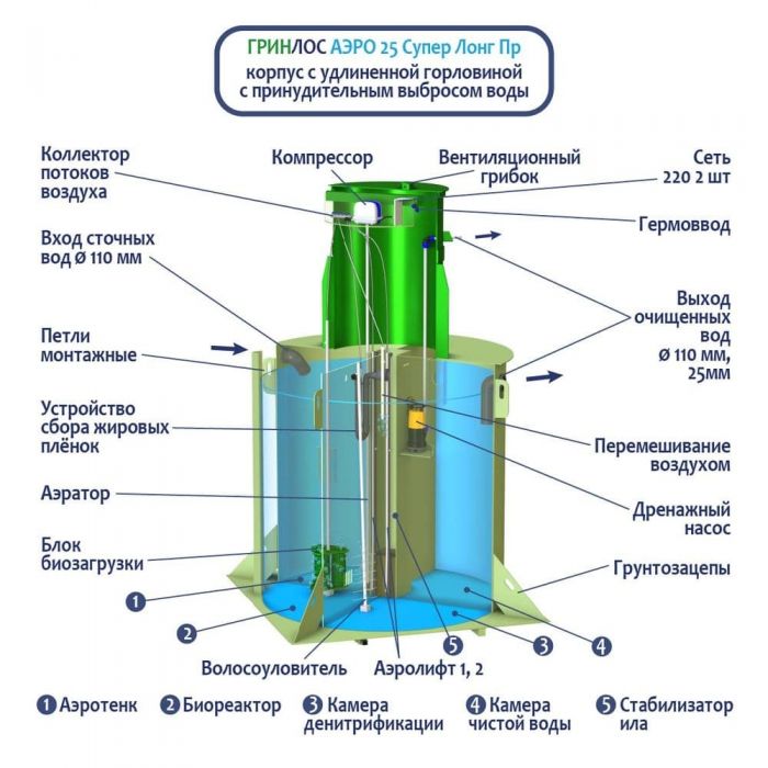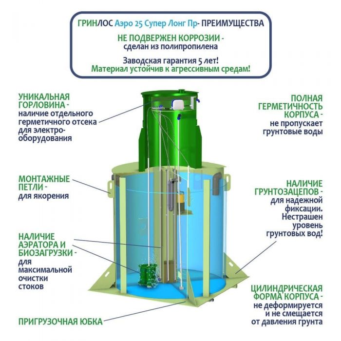 Септик ГРИНЛОС Аэро 25 Пр Супер Лонг