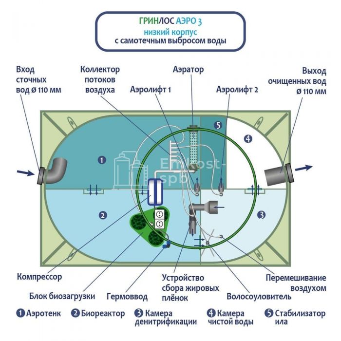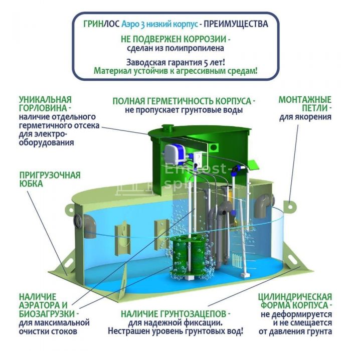 Септик ГРИНЛОС Аэро 3 низкий корпус