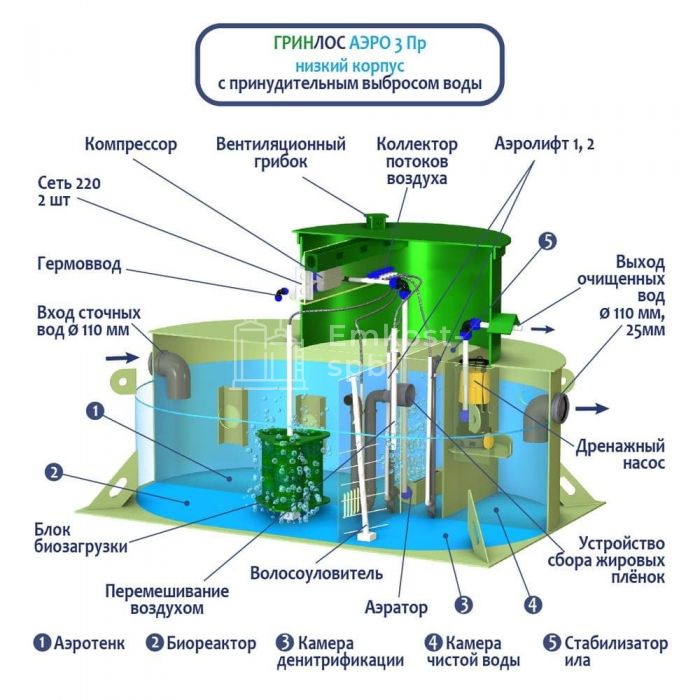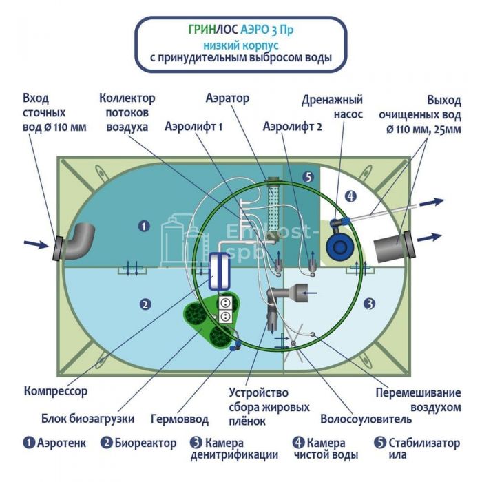 Септик ГРИНЛОС Аэро 3 Пр низкий корпус