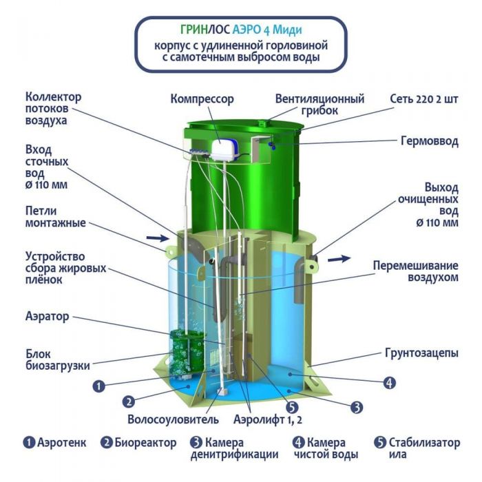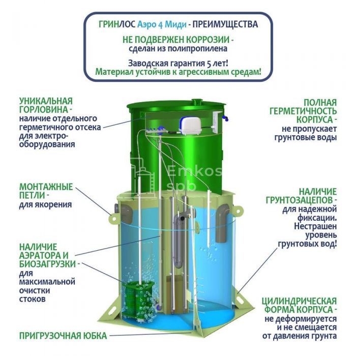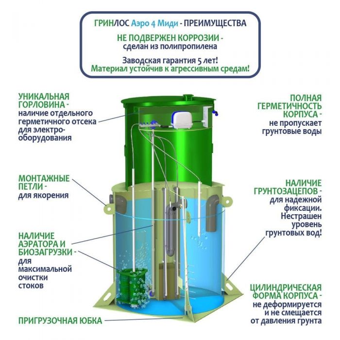 Септик ГРИНЛОС Аэро 4 Миди