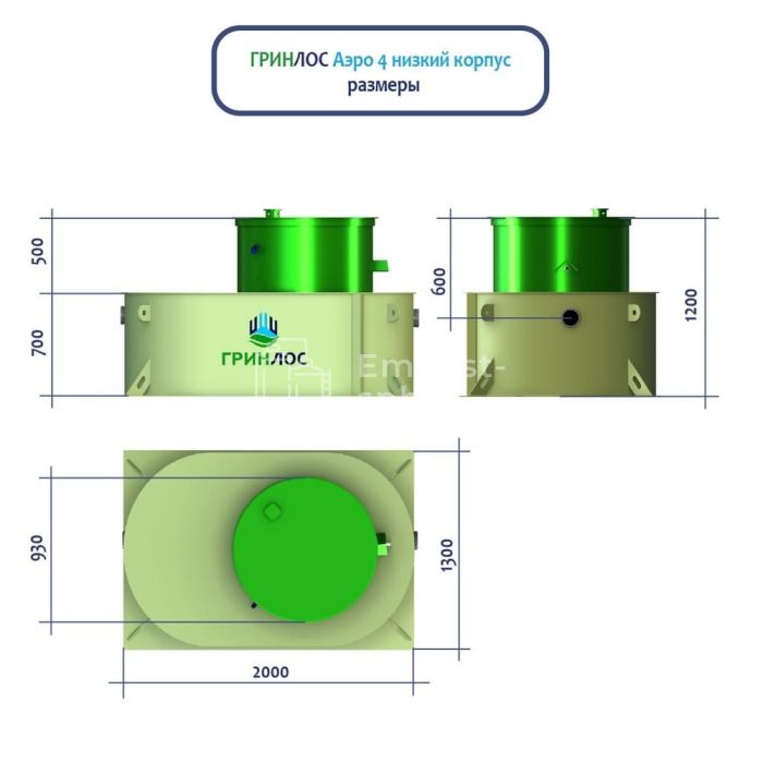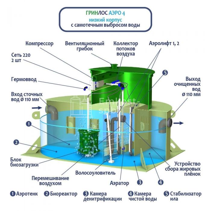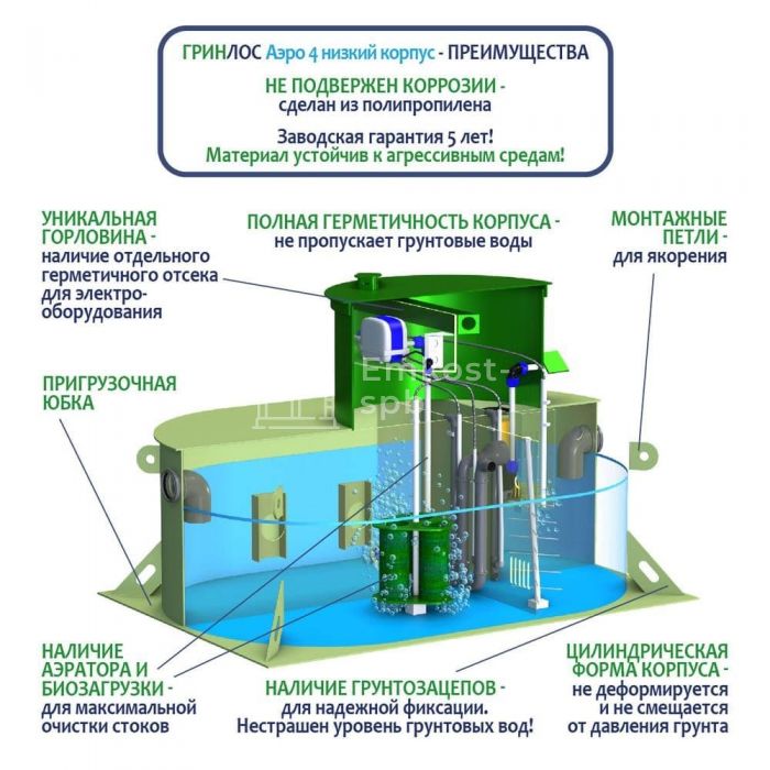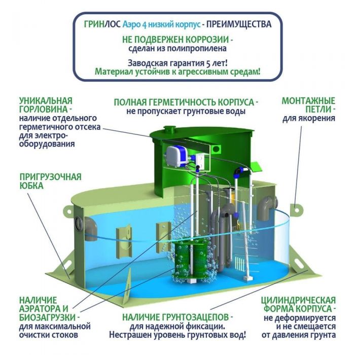 Септик ГРИНЛОС Аэро 4 низкий корпус