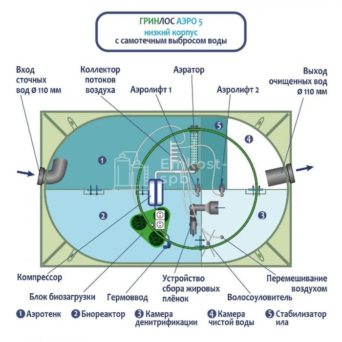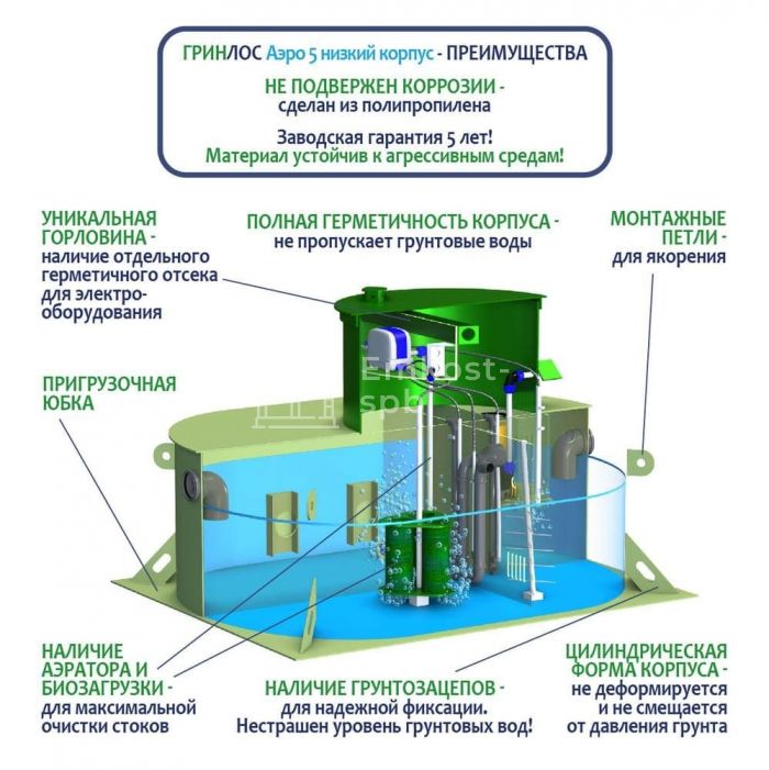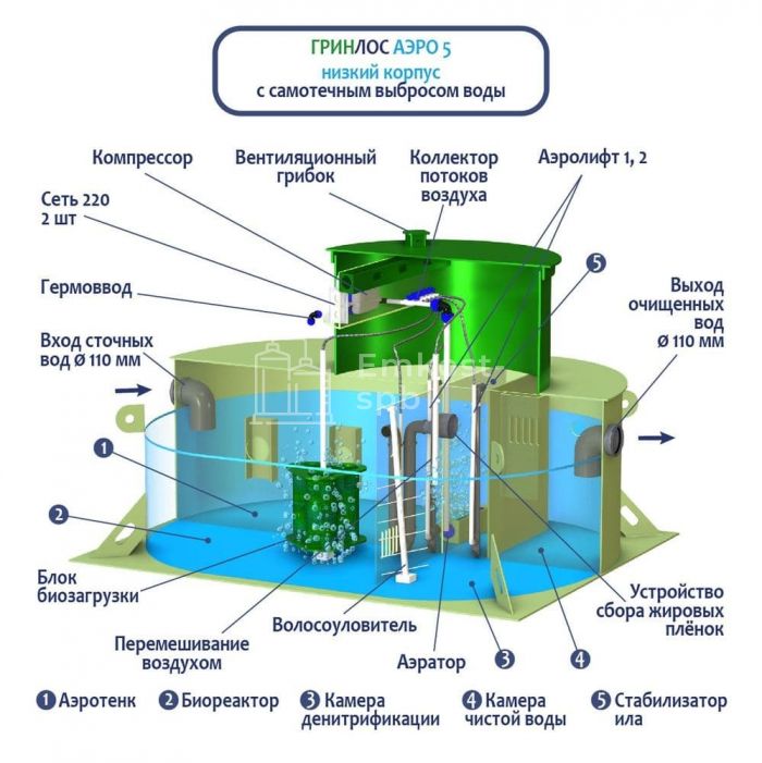 Септик ГРИНЛОС Аэро 5 низкий корпус