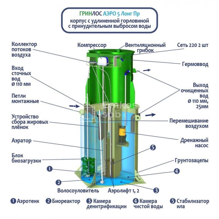Септик ГРИНЛОС Аэро 5 Пр Лонг