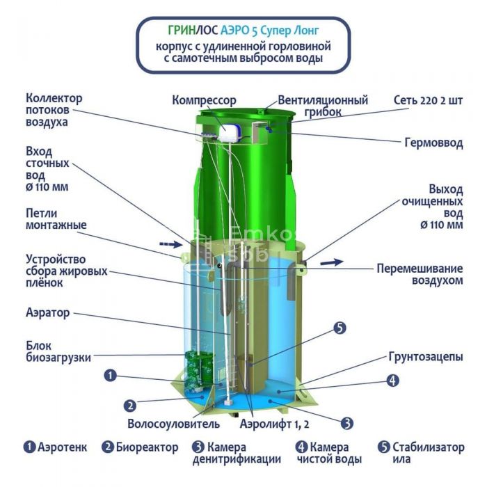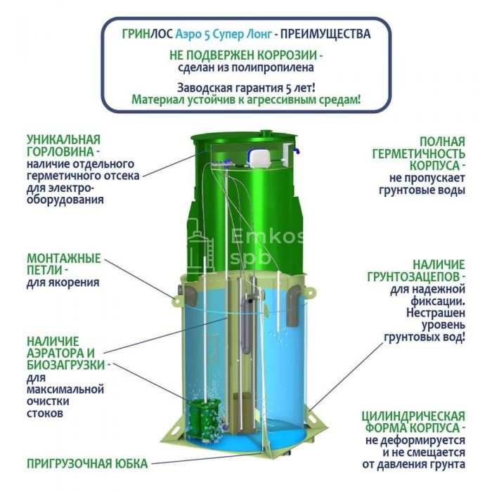 Септик ГРИНЛОС Аэро 5 Супер Лонг