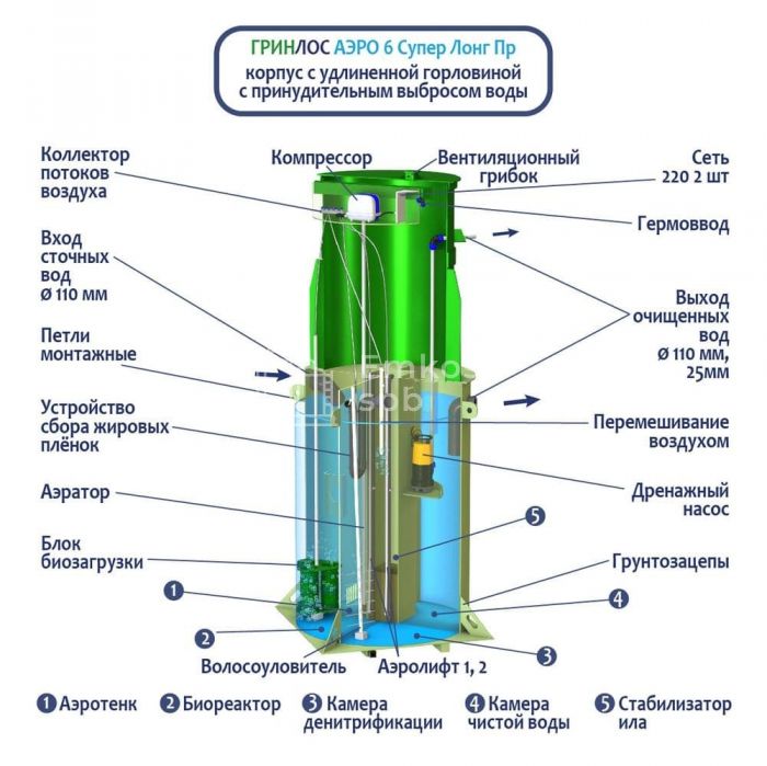 Септик ГРИНЛОС Аэро 6 Пр Супер Лонг