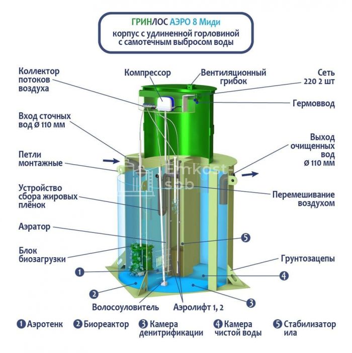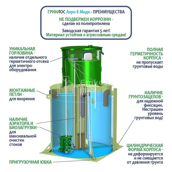 Септик ГРИНЛОС Аэро 8 Миди