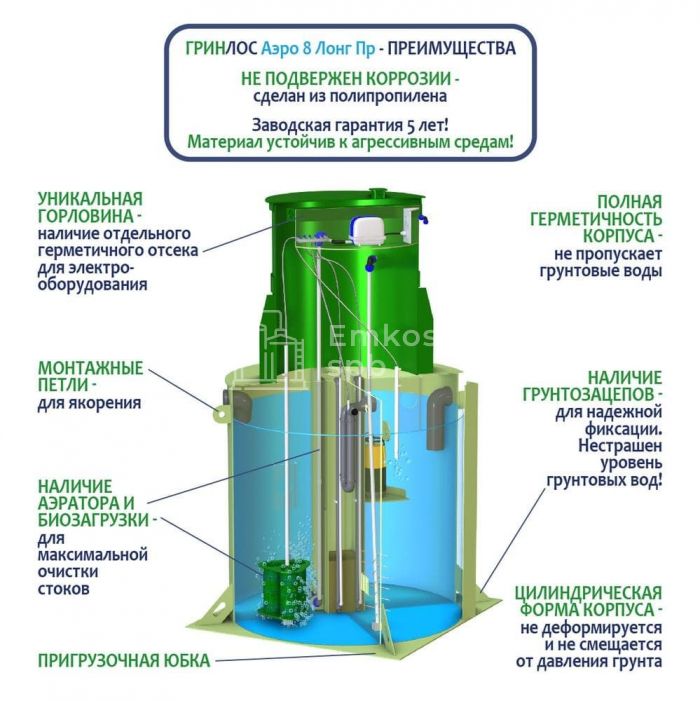 Септик ГРИНЛОС Аэро 8 Пр Лонг
