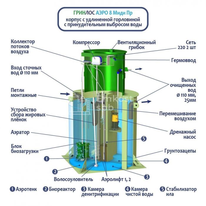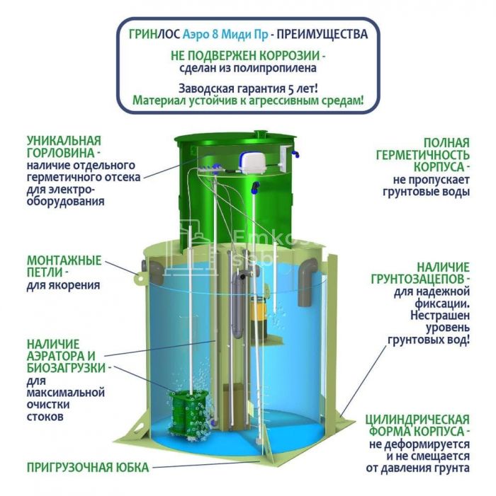Септик ГРИНЛОС Аэро 8 Пр Миди