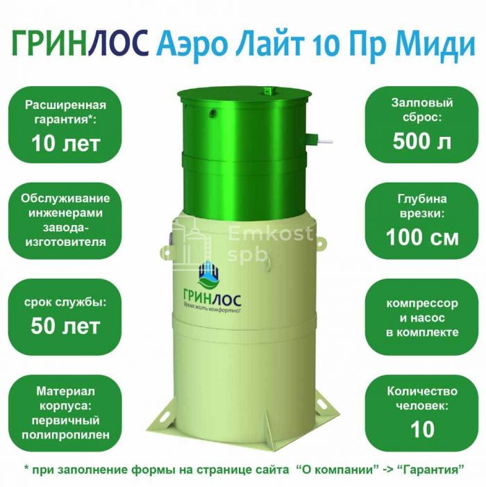 Септик Гринлос Аэро Лайт 10 Пр Миди