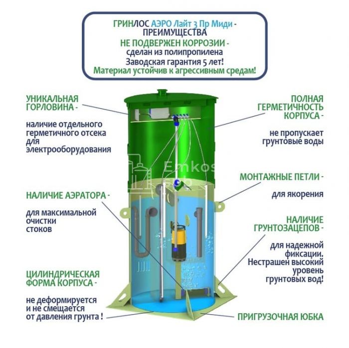 Септик Гринлос Аэро Лайт 3 Пр Миди