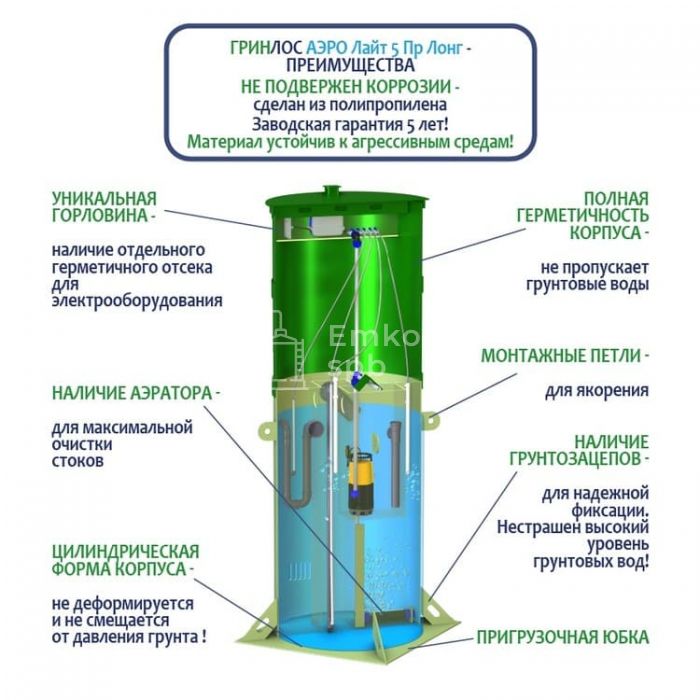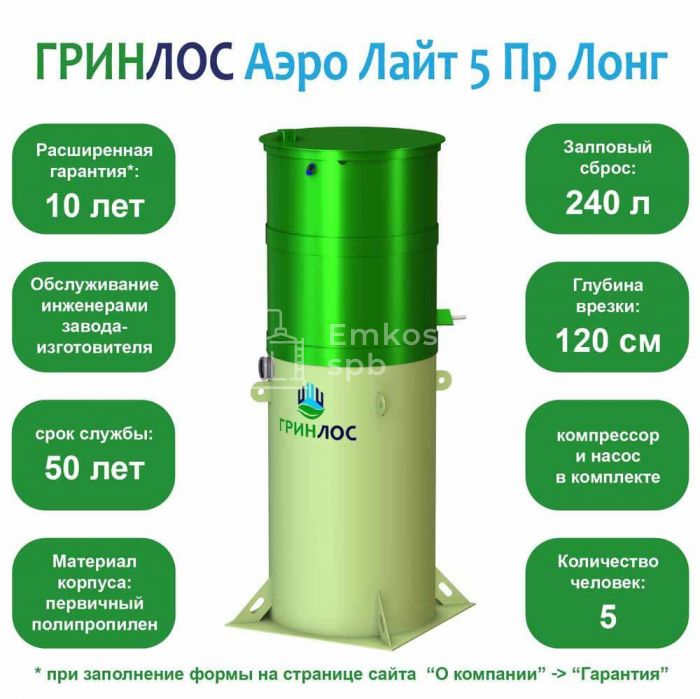 Септик Гринлос Аэро Лайт 5 Пр Лонг
