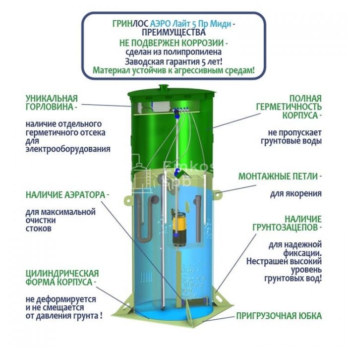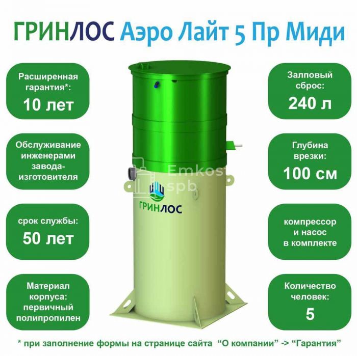 Септик Гринлос Аэро Лайт 5 Пр Миди