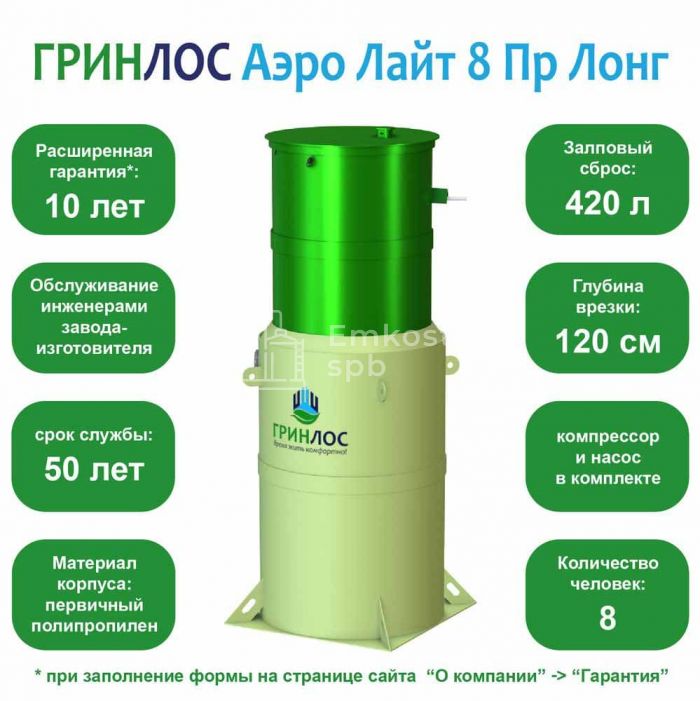 Септик Гринлос Аэро Лайт 8 ПР Лонг