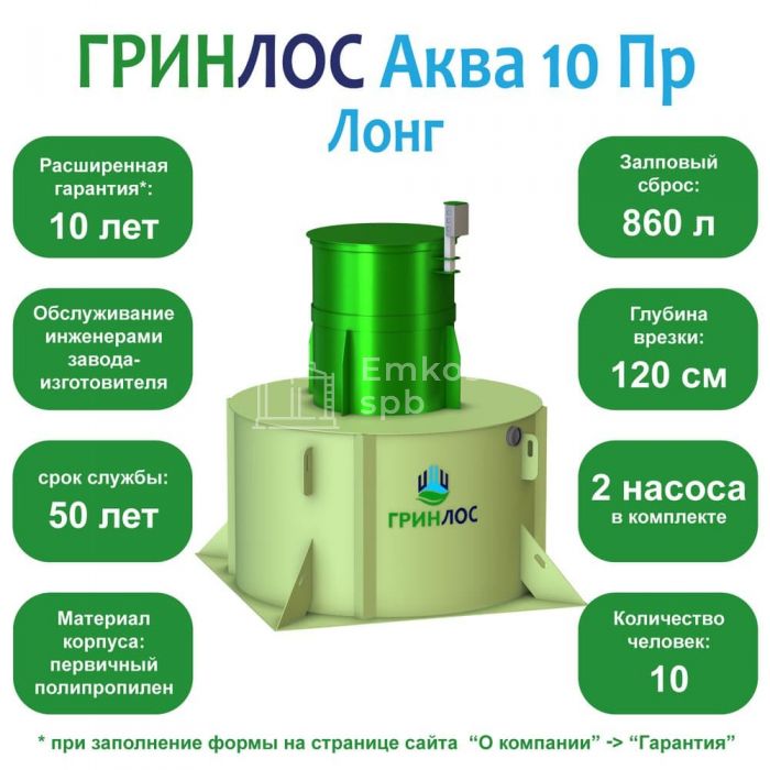 Септик ГРИНЛОС Аква 10 Пр Лонг