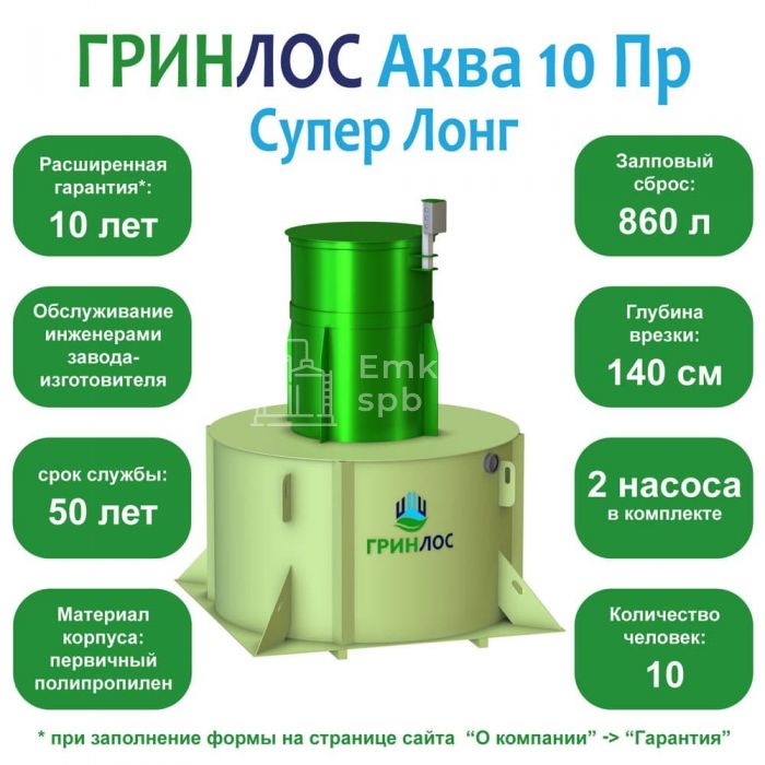 Септик ГРИНЛОС Аква 10 Пр Супер Лонг