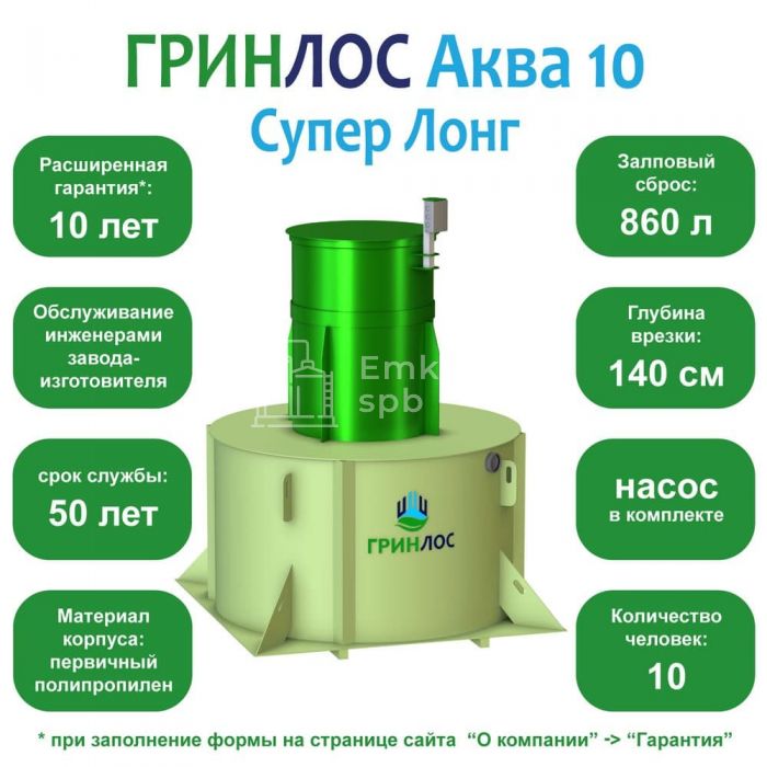 Септик ГРИНЛОС Аква 10 Супер Лонг