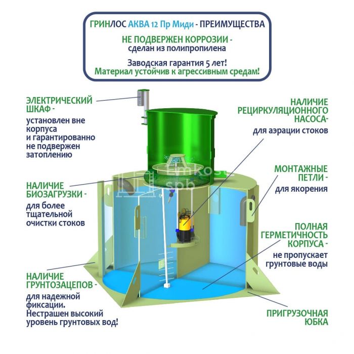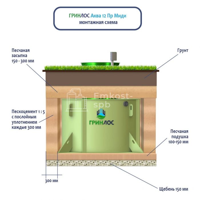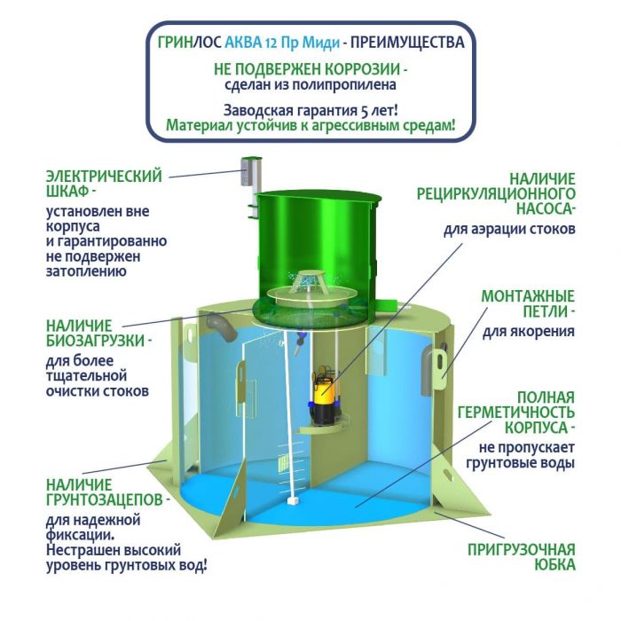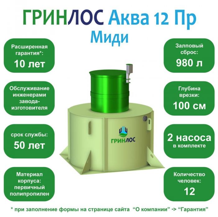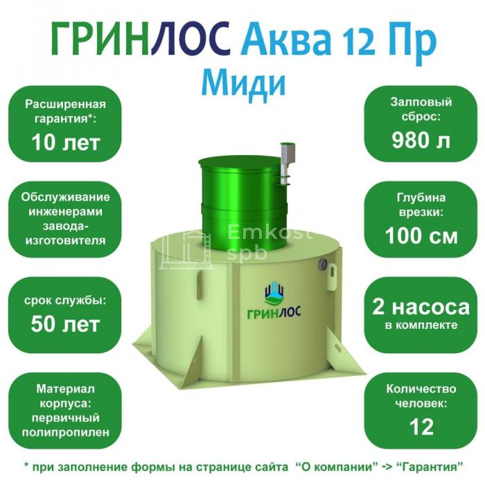 Септик ГРИНЛОС Аква 12 Пр Миди